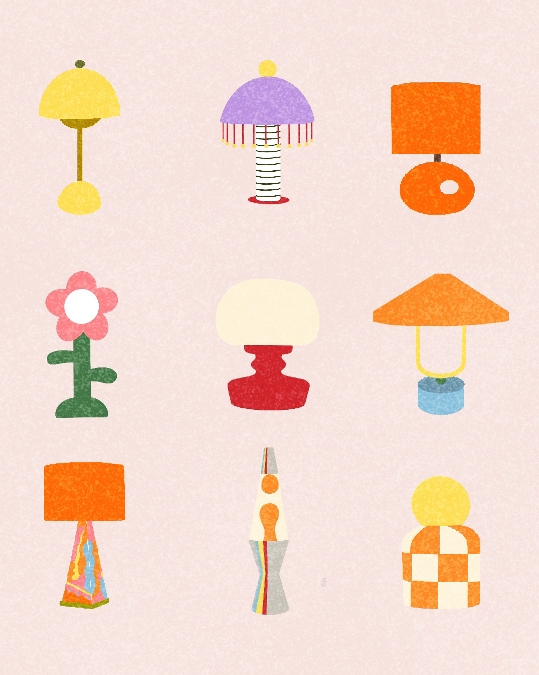 Illustrations lampes design à destination d'un Reels pour mon compte Instagram : https://www.instagram.com/p/C94kPhCq9iF/?hl=fr