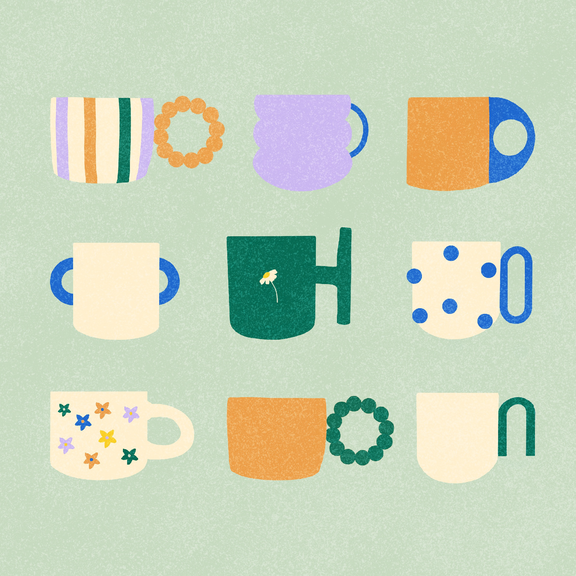 Réalisation d'un réel avec des illustrations de tasses.
