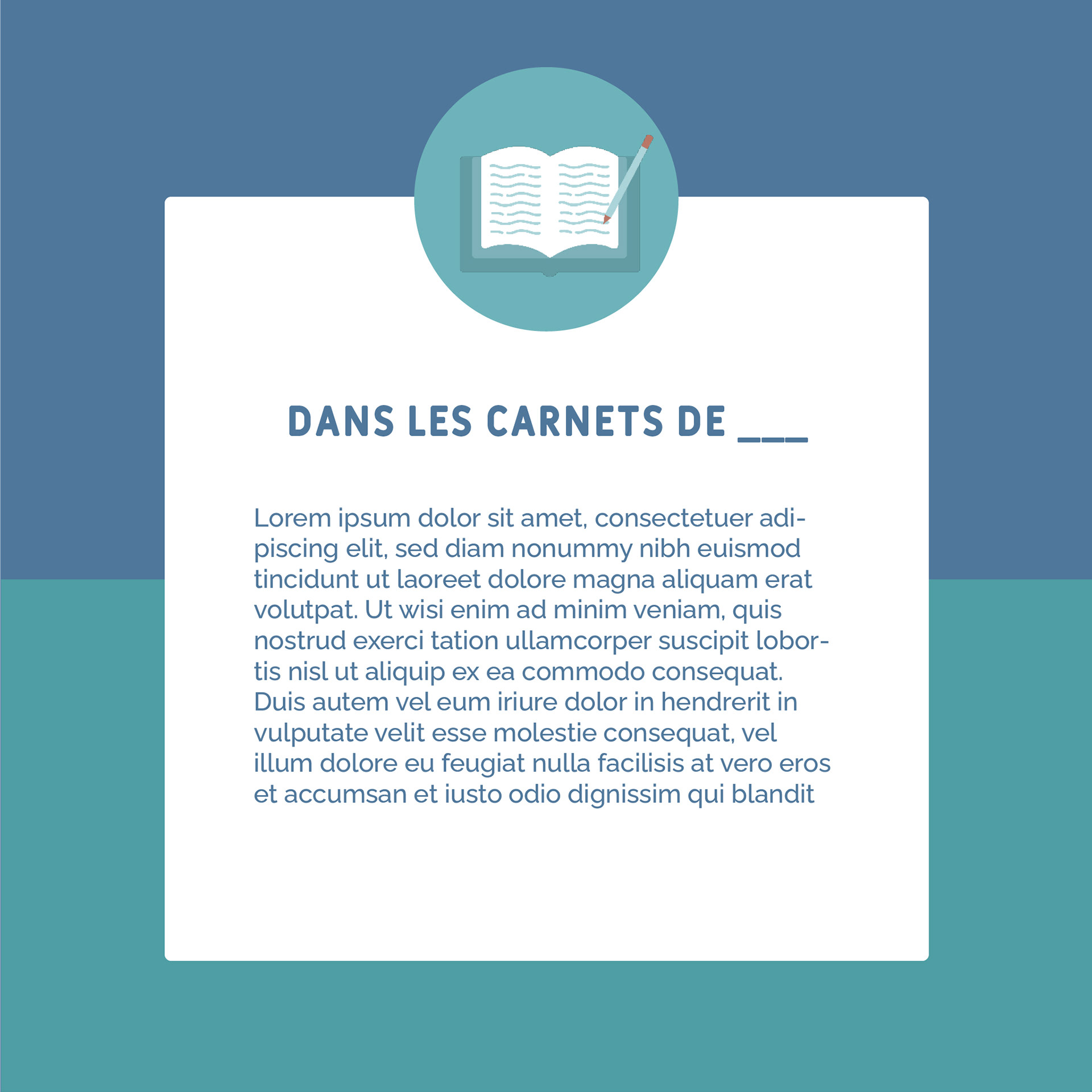 "Dans les carnets de ____" et "Instantanés de vie" à destination des réseaux sociaux et la newsletter du podcast.